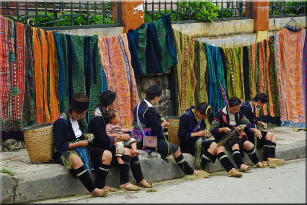 H'mong Women Splitting Hemp